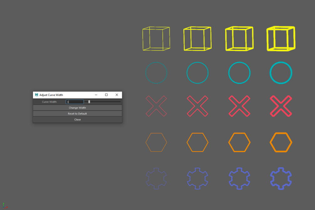 Tool features : Adjust the width of selected curves. You can set a custom width value or the default one.